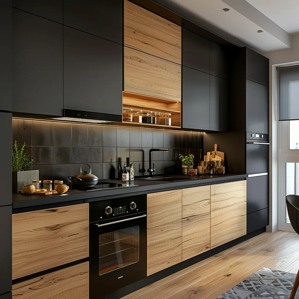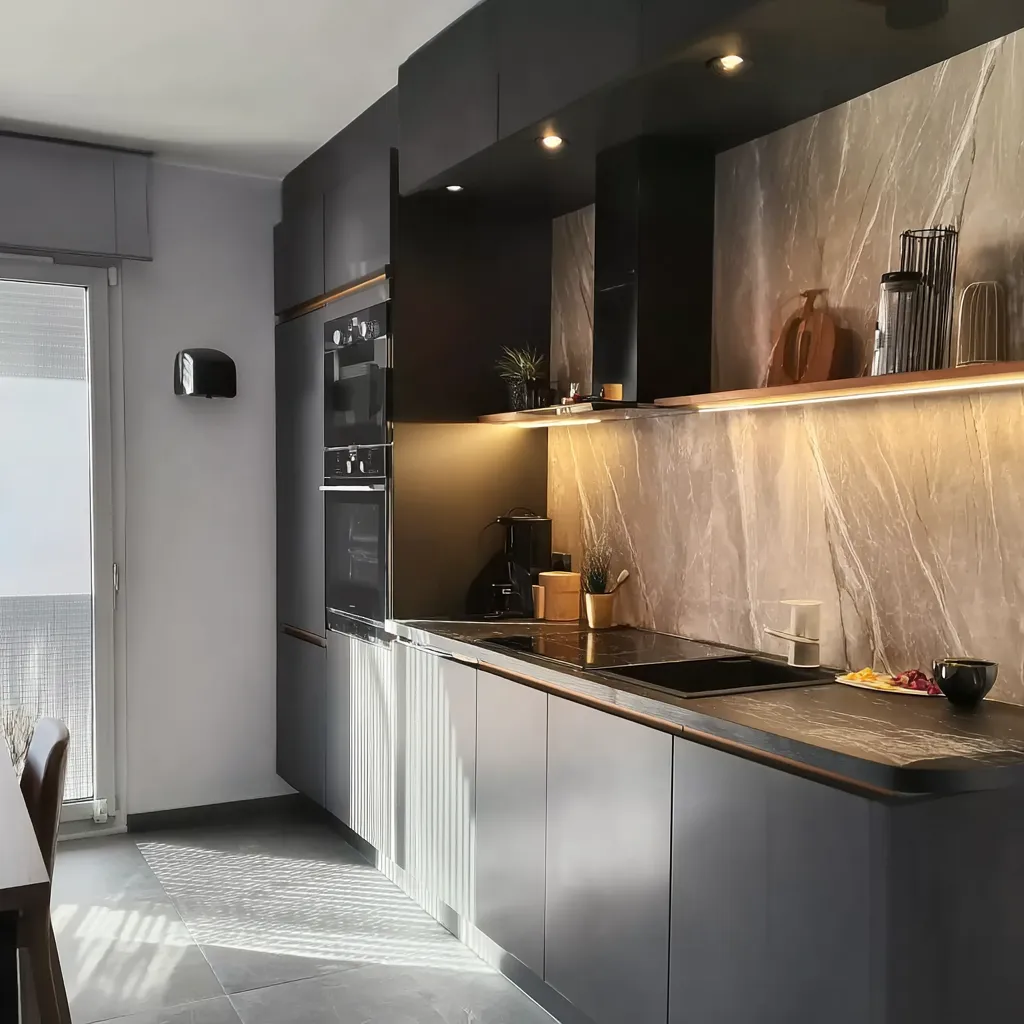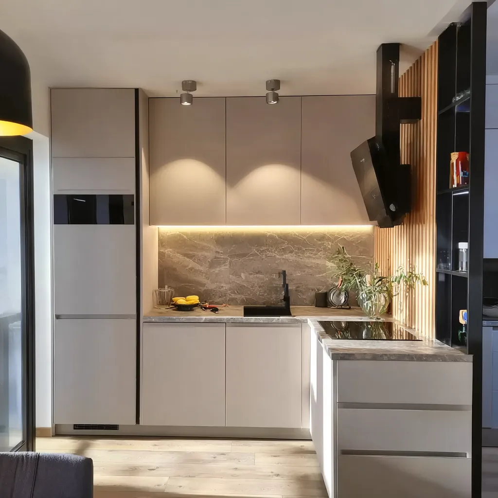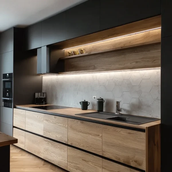Kada je reč o dizajnu, moderna kuhinja često koristi neutralne boje, kao što su bela, siva i crna, uz dodatak akcentnih boja ili materijala za stvaranje interesantnih kontrasta.