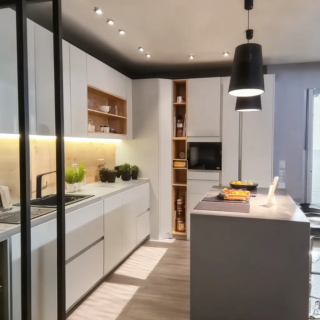 - Optimizacija prostora – Efikasno korišćenje raspoloživog prostora ključno je za funkcionalnost kuhinje. To uključuje pametno planiranje rasporeda elemenata, korišćenje sklopivih ili izvlačnih elemenata, kao i integraciju višenamenskih rešenja poput kutija za skladištenje ispod kuhinjskog ostrva ili visećih polica iznad radnih površina.